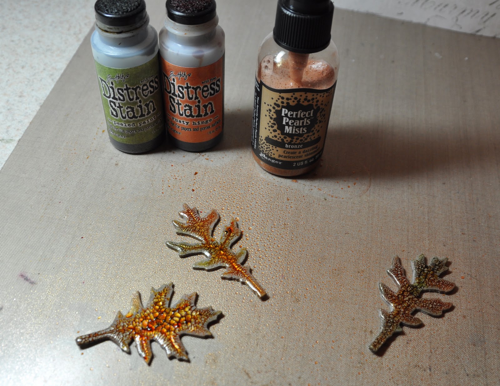 Spray Leaves with Bronze Perfect Pearl Spray Mist.