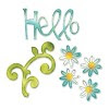 Die cut the flowers from watercolor paper with the Karen Burniston Hello Sizzlits Die set. This set comes with 3 dies, the Hello, the Flowers and a fun swirl. Before you punch the images out color the flowers with Squeezed Lemonade Distress ink.